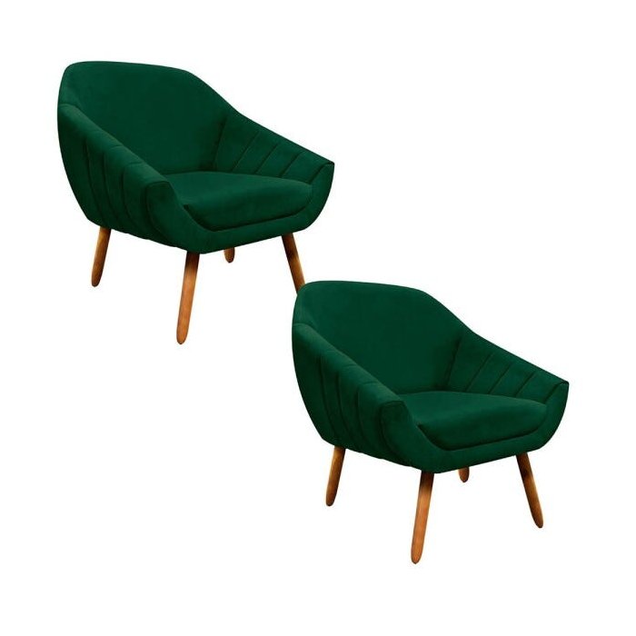 Kit 2 Poltronas Giovana Suede Pés Palito Castanho D'Rossi - Verde