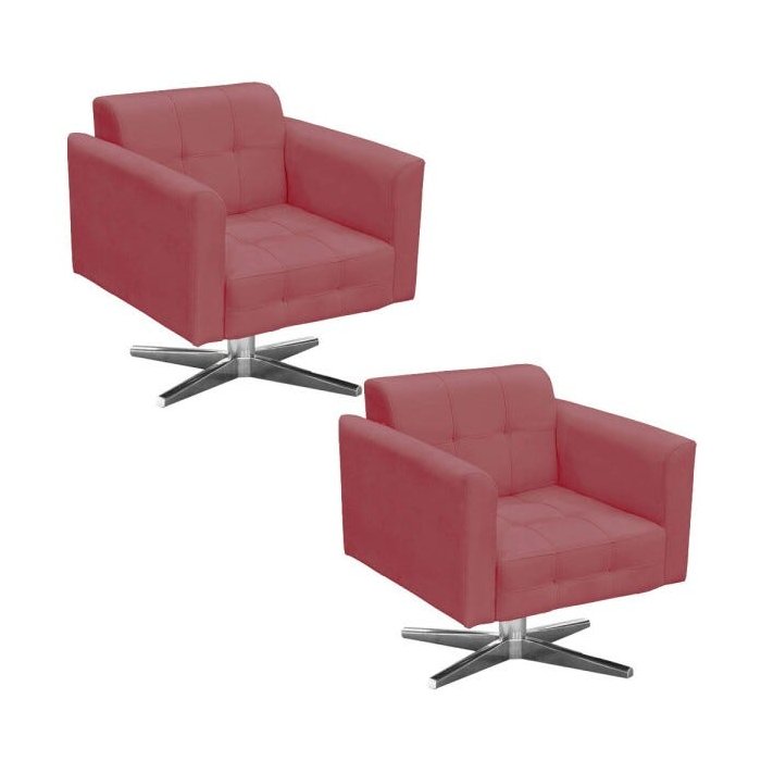 Kit 2 Poltronas Giratória Elisa Suede Rose Base Estrela Cromado D'Rossi Rose