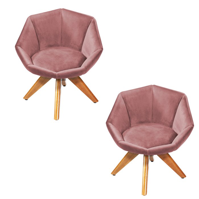 Kit 2 Poltronas Giratória Jaspe Veludo Base de Madeira - D'Rossi - Rosa Rosa