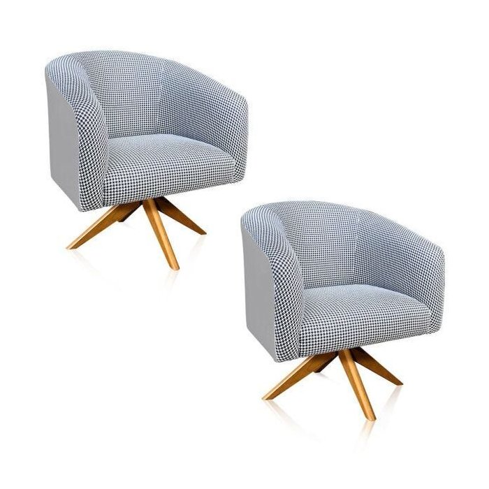 Kit 2 Poltronas Giratória Stella Linho A72 com Corino Base Madeira D'rossi - Cinza