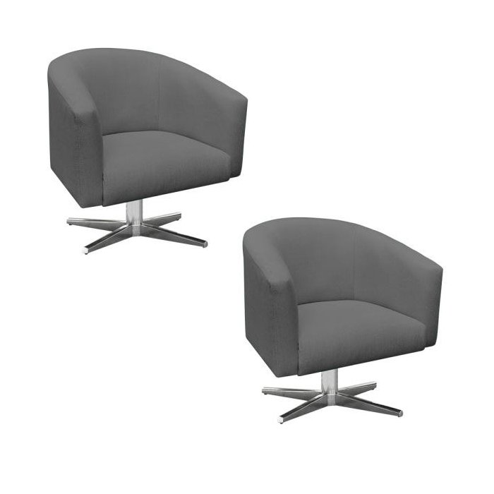 Kit 2 Poltronas Giratória Stella Linho Grafite A26 Base Cromada - D'Rossi