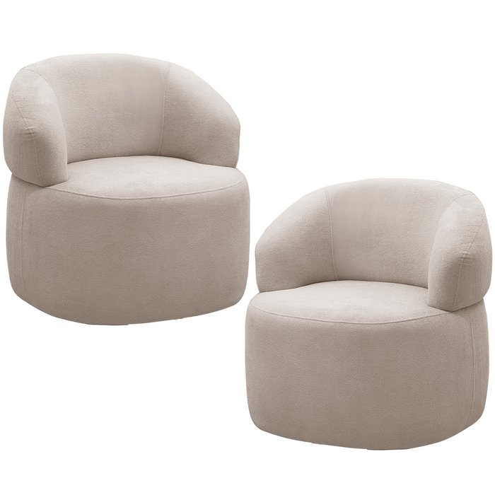 Kit 2 Poltronas Giratórias Giratória Sala Living Orgânico Carmen F04 Bouclê Bege - Lyam Decor
