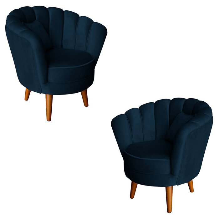 Kit 2 Poltronas Infantis Decorativa Sala de Estar Pétala Veludo Azul Marinho Azul Marinho