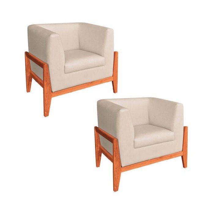Kit 2 Poltronas Lucy Linho Fino Bege A27 Base Madeira Castanho D'rossi Bege