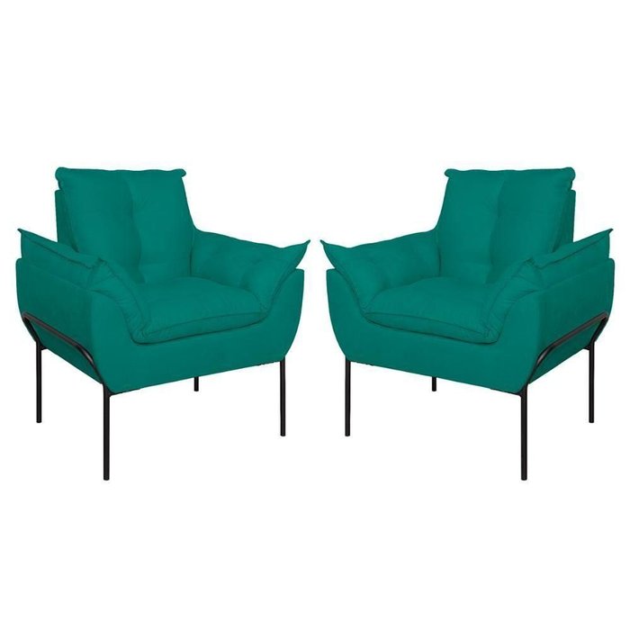 Kit 2 Poltronas Luxo Base Reforçada Metal Preta Azul Turquesa Azul Turquesa