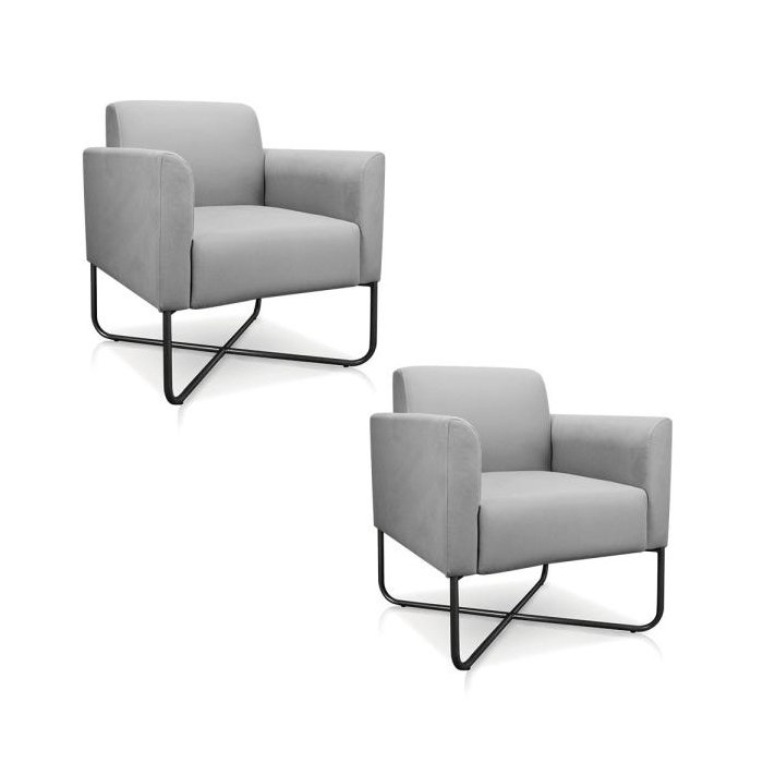 Kit 2 Poltronas Marisa Suede Cinza Base X Industrial Preto - D'Rossi