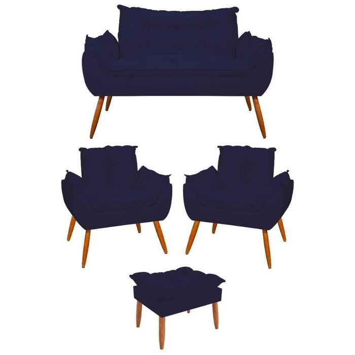 Kit 2 Poltronas + Namoradeira + Puff Opala Decorativa Balaqui Azul Marinho Azul Marinho