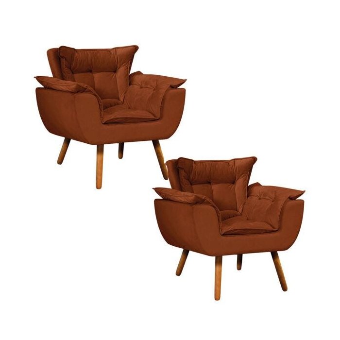 Kit 2 Poltronas Odisseia Suede Pés Palito Castanho D'Rossi - Terra Terra
