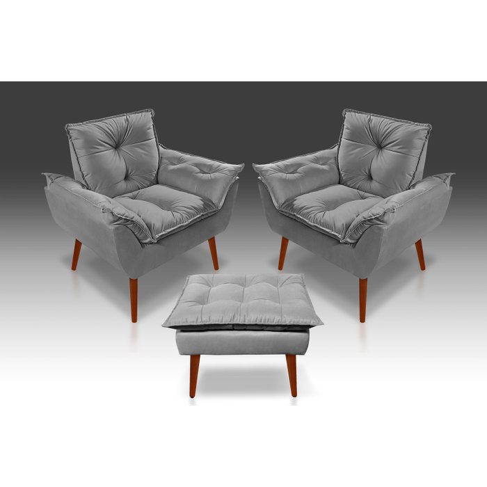 Kit 2 Poltronas Opala + 1 Puff Opala Suede Cinza Claro - Tucanos Estofados Cinza Claro
