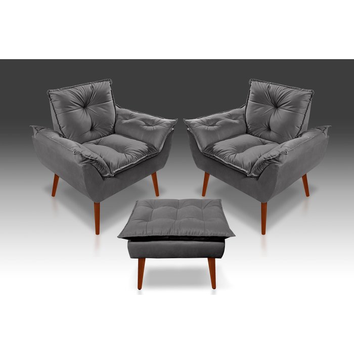 Kit 2 Poltronas Opala + 1 Puff Opala Suede Cinza Escuro- Tucanos Estofados Cinza Escuro