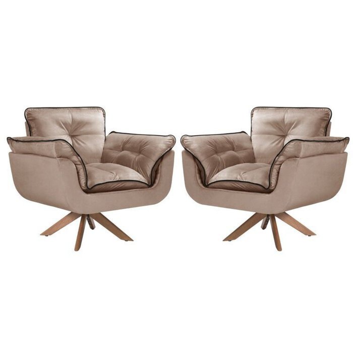 Kit 2 Poltronas Opalla com Debrum e Base Giratória Capuccino/Preto