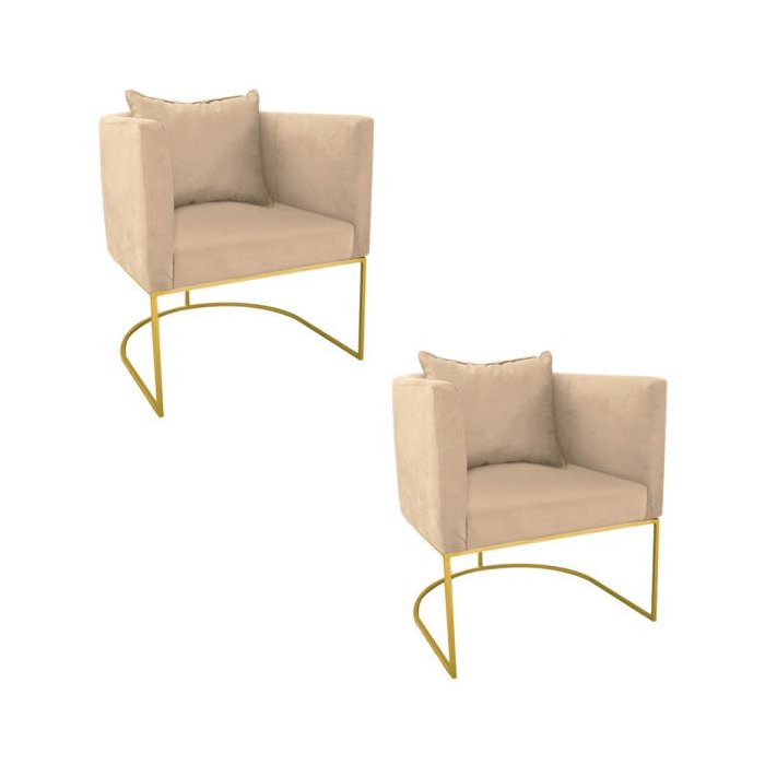 Kit 2 Poltronas Paola Suede Base Metálica Dourado - D'Rossi - Bege