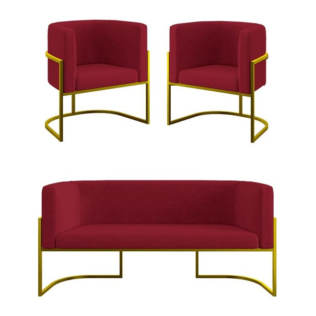 Kit 2 Poltronas + Sofá 2 Lugares Base de Metal Gold Balaqui Marsala