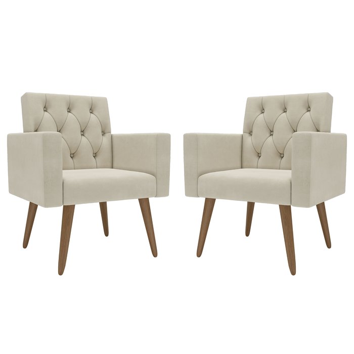 Kit 2 Poltronas Thais Clássico: Suede/bege Bege
