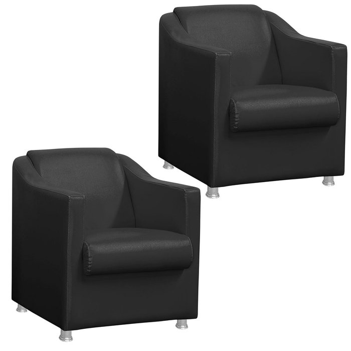 Kit 2 Poltronas Tilla Decorativa Escritório Corino Preto Preto