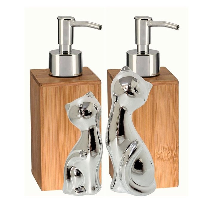 Kit 2 Porta Sabonete Líquido Bambu e Enfeite Casal Gato