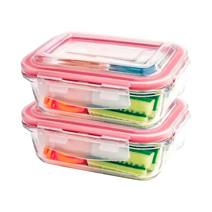 Kit 2 Pote para Alimentos Hermético Marmita de Vidro Fit 370ml com Borracha de Vedação e Trava na Ta