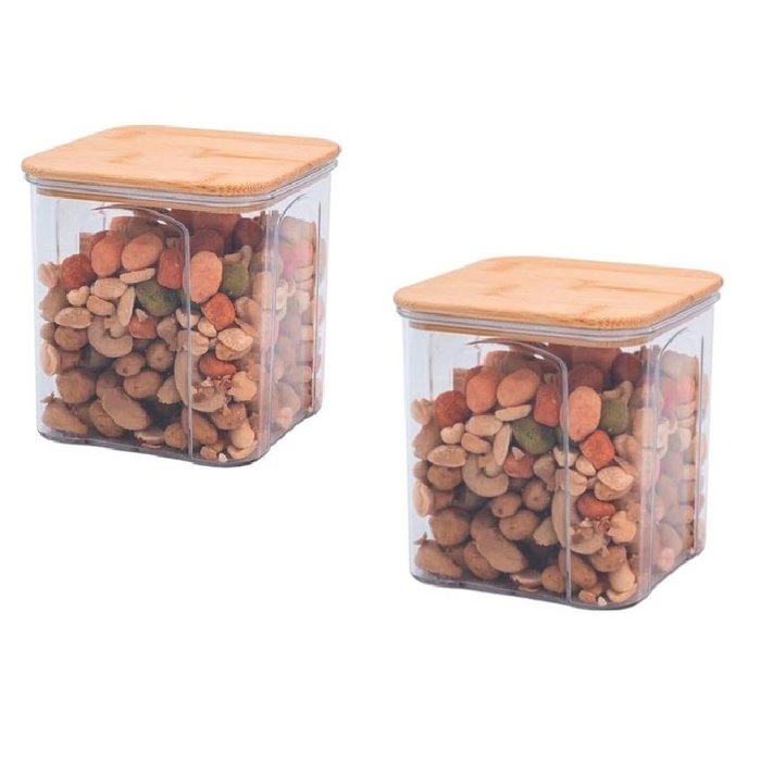 Kit 2 Potes Acrílico 900ml Tampa Bambu Herméticos Quadrado