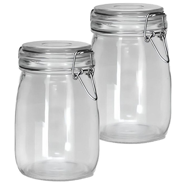 Kit 2 Potes de Vidro Hermético Tampa Vedação Conserva 1l Transparente