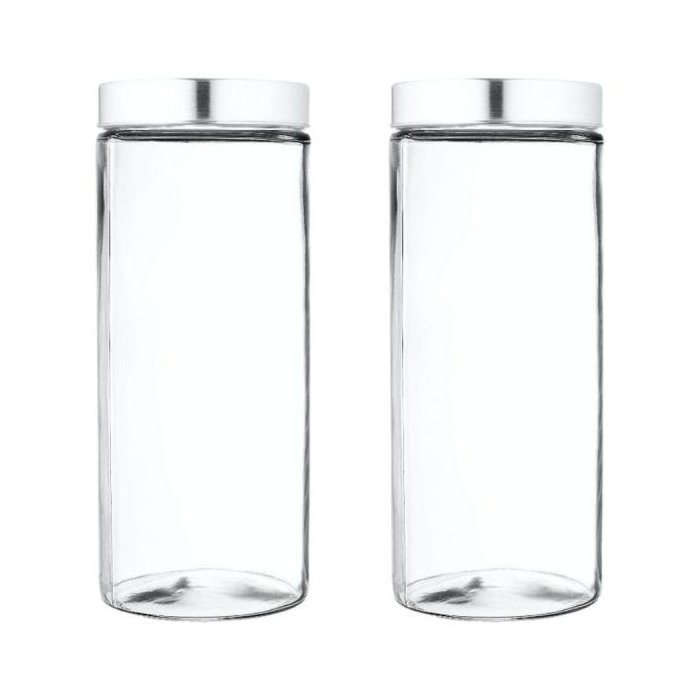 Kit 2 Potes Frasco de Vidro Tampa Alumínio Escovado 1250ml