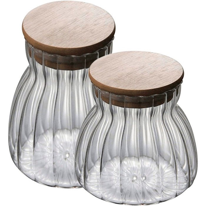 2 Potes Hermético Com Tampa de Bambu 450ml 700ml;