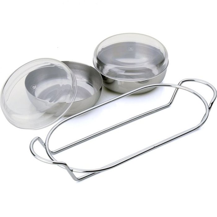 Peso: 0,41.Dimensões 25,5x10,5x6,5cmMaterial SAN/Aço Inox/Aço CromadoComposição 1 suporte, 2 potes