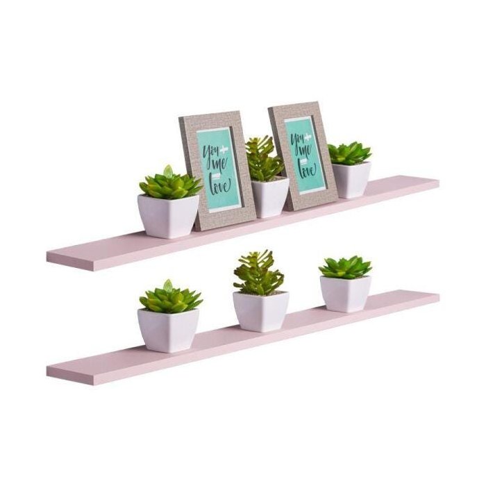 Kit 2 Prateleiras 80 x 20cm Rosa Claro Suporte Invisível