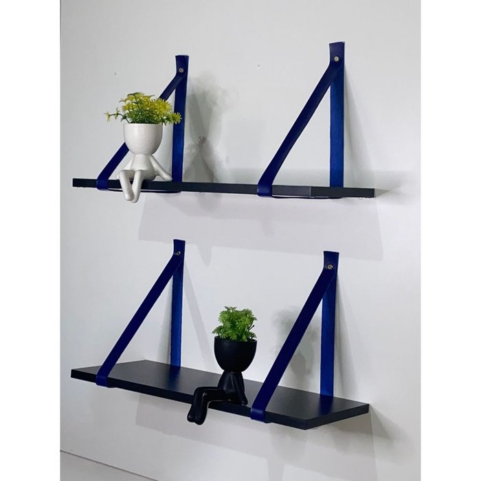 Kit 2 Prateleiras de Mdf Preto 50x20cm:azul