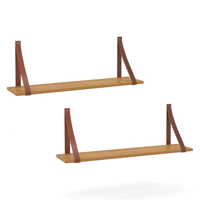 Kit 2 Prateleiras Gold Freijó com Alças de Couro - Matic Móveis