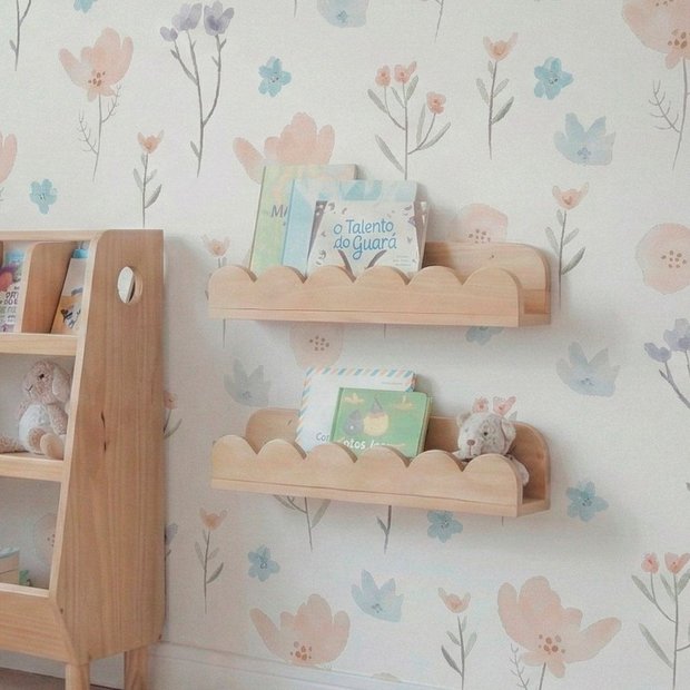 Com o delicado acabamento frontal em formato de ondinhas, as prateleiras trazem um toque lúdico e leve à decoração, tornando o ambiente mais acolhedor e funcional. Ideais para organizar livrinhos, brinquedos e objetos decorativos, deixam tudo visível e ao alcance das crianças, incentivando a autonomia no dia a dia.