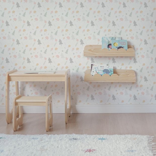 Com o delicado acabamento frontal em formato de ondinhas, as prateleiras trazem um toque lúdico e leve à decoração, tornando o ambiente mais acolhedor e funcional. Ideais para organizar livrinhos, brinquedos e objetos decorativos, deixam tudo visível e ao alcance das crianças, incentivando a autonomia no dia a dia.
