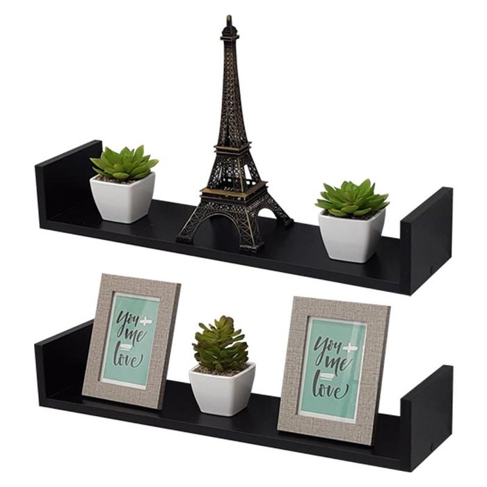 Kit 2 Prateleiras U 100 x 15cm Preta Suporte Invisível. A prateleira Crie Fácil foi desenvolvida pensando em deixar o seu ambiente mais organizado e criativo de forma prática e simples. Produto produzido em MDP de alta qualidade garantindo resistência e durabilidade. A prateleira é acompanhada de suporte para fixação de embutir invisível. Cor: Preto. Tamanho: 100 x 15cm. Material: Madeira MDP. Fixação: embutir invisível. Instruções de uso e instalação: Para fácil limpeza, utilize pano levemente umedecido. Não utilizar produtos químicos ou abrasivos. Acompanha embalagem com as instruções de montagem e fixação. *Observação: todos os itens de decoração das fotos não acompanham o produto