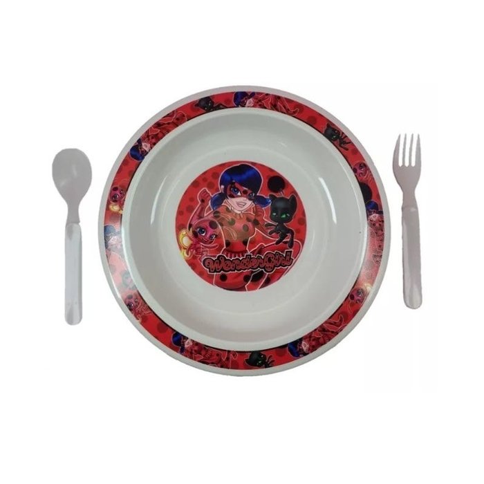 Kit 2 Pratos Infantil com Talher Pratinho Bebe Lady Bug +Brinde