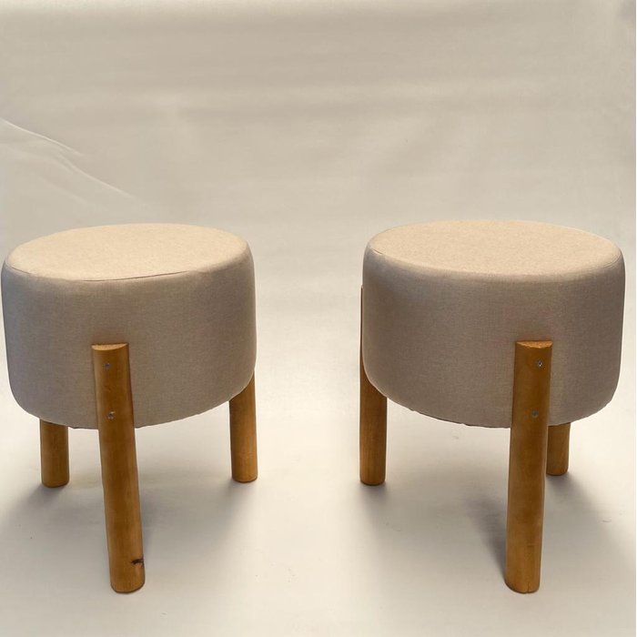 Kit 2 Puff com Pés de Madeira:bege BEGE