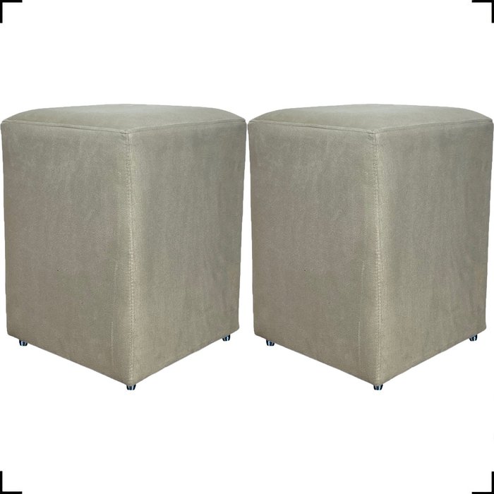 Kit 2 Puff Decorativo Dado Para Sala Recepção Manicure, Escritório E Consultório Suede Bege