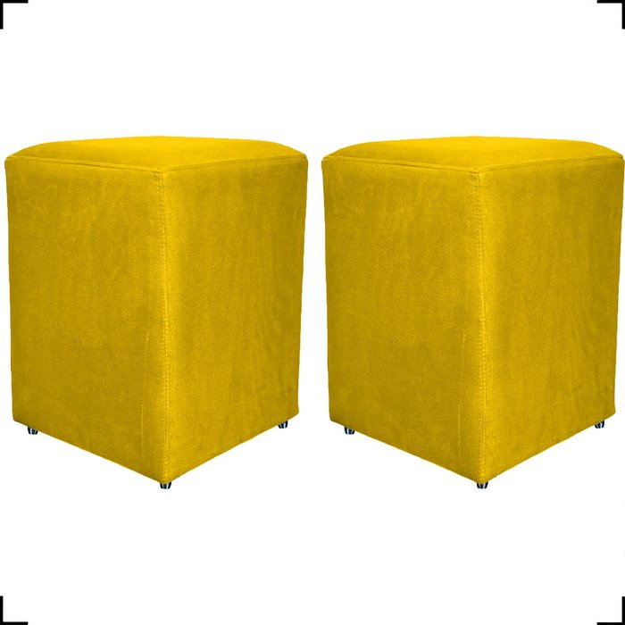 Kit 2 Puff Decorativo Dado Para Sala Recepção Manicure, Escritório E Consultório Suede Amarelo
