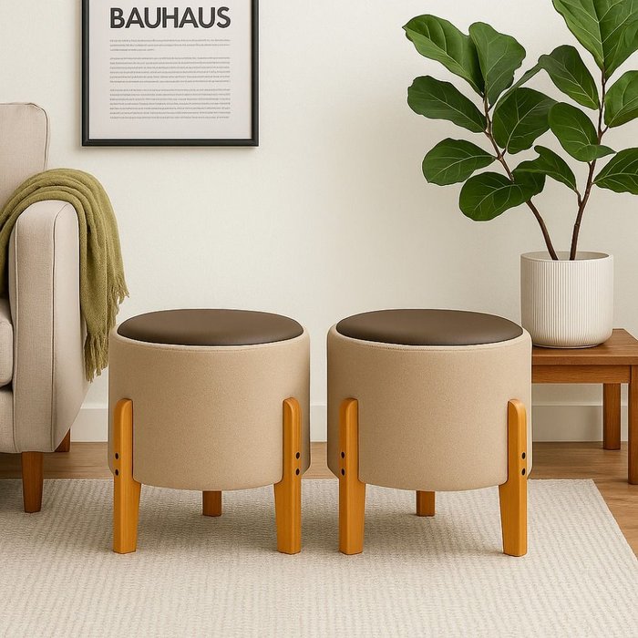 Pés em Madeira Maciça: Envernizados, os pés conferem um visual rústico e robusto, complementando o design do puff.