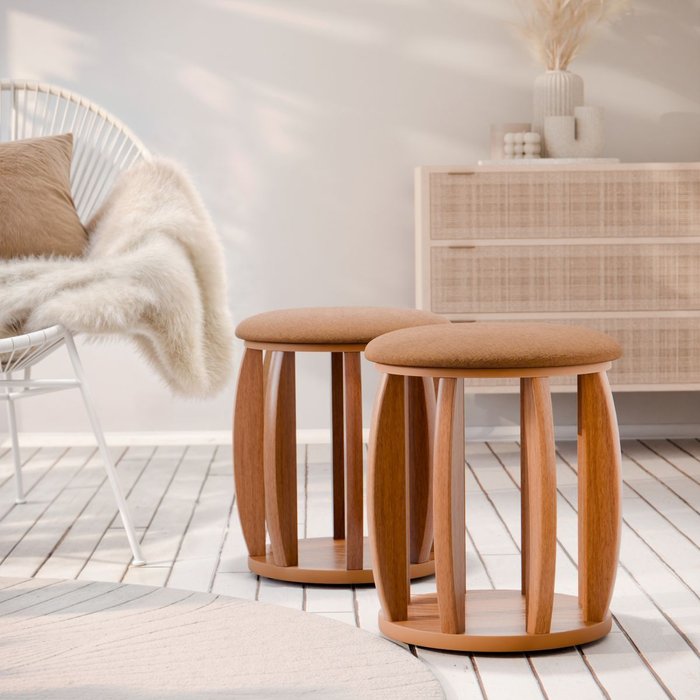 O Puff Paris é uma peça de mobiliário encantadora e funcional. Geralmente, é construído com ripas de madeira de qualidade, cuidadosamente moldadas e unidas para formar o formato cilíndrico distintivo de um barril. Na limpeza utilizar pano seco. Peso suportado 100 quilos.