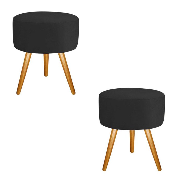Kit 2 Puff Preto para Decoração Sala de Estar Redondo
