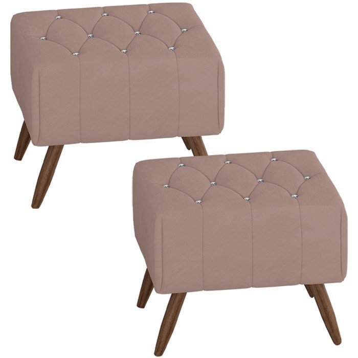 Kit 2 Puff Puf Para Sala Pes Madeira Trit Veludo SL 949 Peer