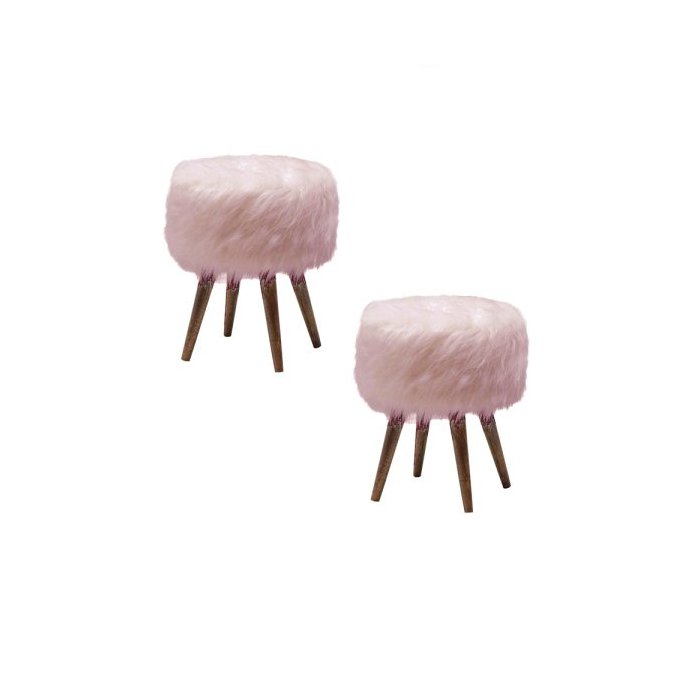 Kit 2 Puff Redondo de Pelúcia Rosa Pelego Pés Palito