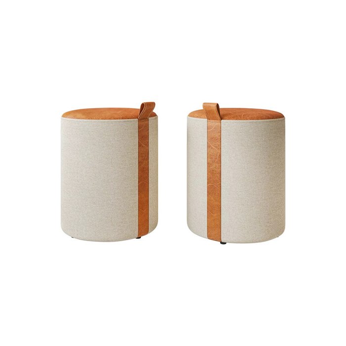 Kit 2 Puff Redondo Zeus Linho Bege Couro Caramelo Luxo - Ms