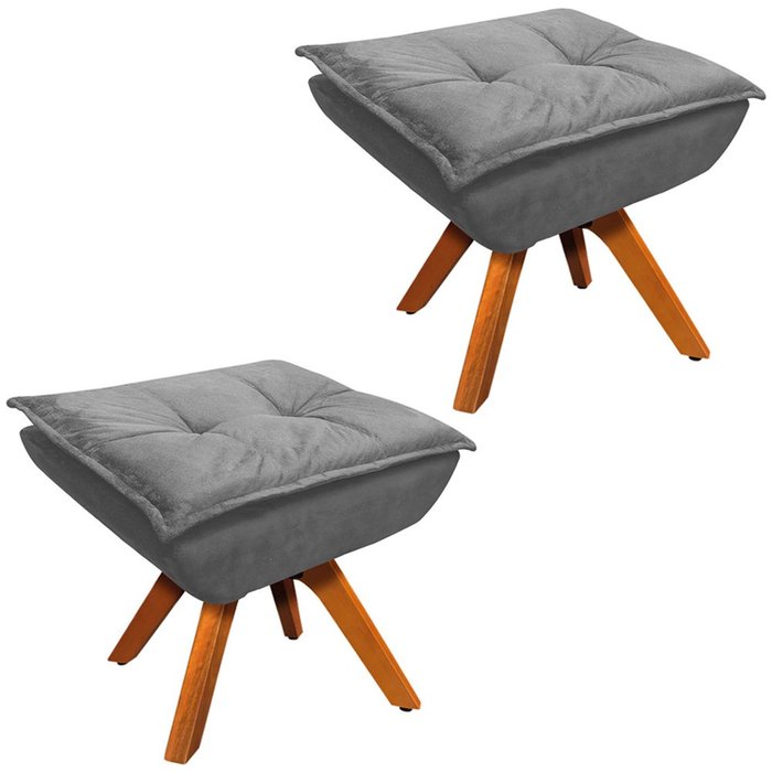 Kit 2 Puff's Decorativos Base Giratória em Madeira Charger Suede Grafite - Gran Belo