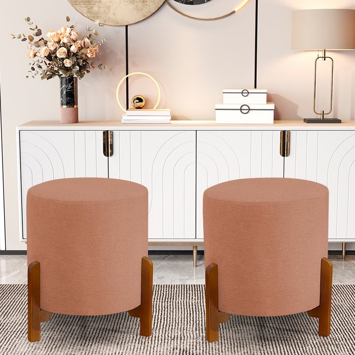 Kit 2 Puff Thor 3 Pés Base em Madeira Maciça - Linho Terracota