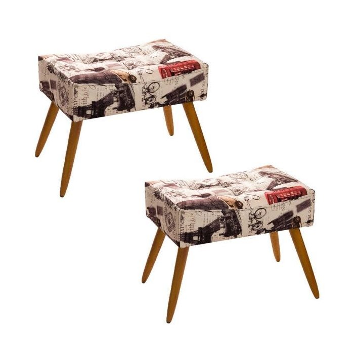 Kit 2 Puffs Banqueta Retangular Suede Estampado País Vermelho