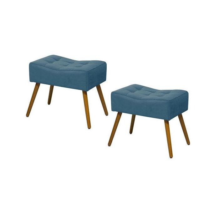 Kit 2 Puffs Banqueta Retangular Suede Liso Azul Royal