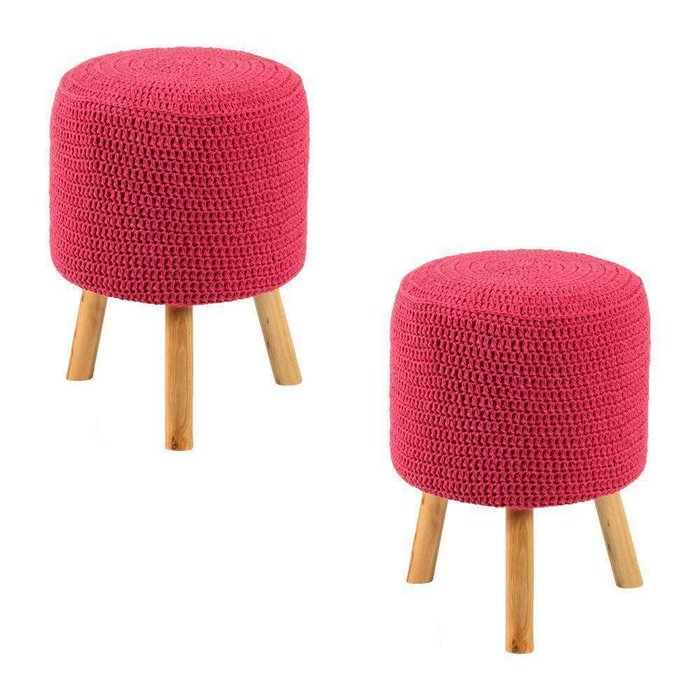 Kit 2 Puffs Banquetas Round Crochê Rosa - Stay Puff