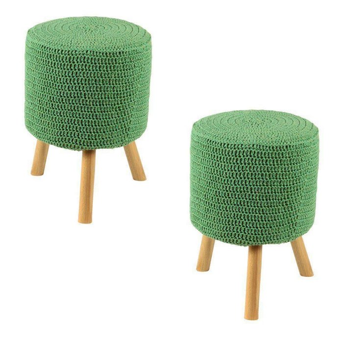 Kit 2 Puffs Banquetas Round Crochê Verde - Stay Puff