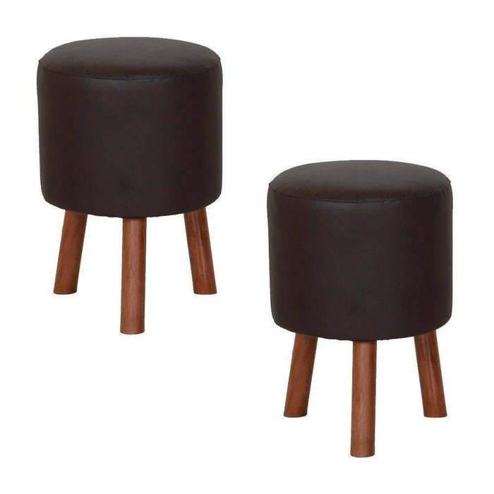 Kit 2 Puffs Banquetas Round Nobre 3 Pés Madeira Café - Stay Puff
