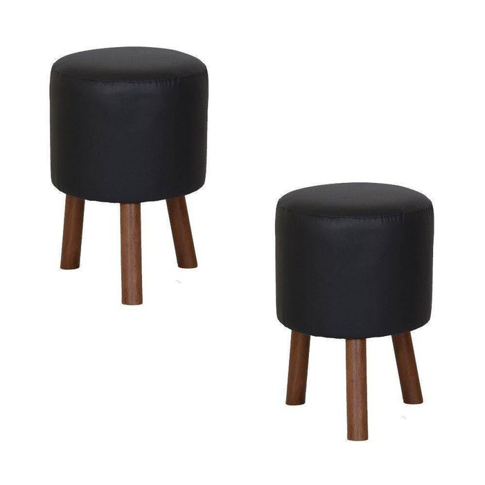 Kit 2 Puffs Banquetas Round Nobre 3 Pés Madeira Preto